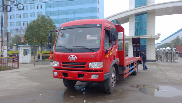 解放180馬力平板運輸車昨天順利交付給江西淮北客戶,該車采用錫柴180馬力發動機,J5K半高頂駕駛室,237*75*7大梁,9.00R20 16層級鋼絲胎,4970軸距,改進型435沖焊橋,整車尺寸:8820×2500×2800。