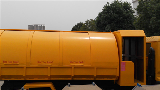 該車是尼日利亞用戶在實地考察了我廠后定購的,該車根據(jù)用戶的實際使用環(huán)境經(jīng)過了特殊設(shè)計:密封垃圾箱設(shè)計成了橢圓形,便于雨水流走,另外,根據(jù)實際使用需要,在垃圾斗的前面還設(shè)計有一個乘人間,便于垃圾清運人員的乘坐。